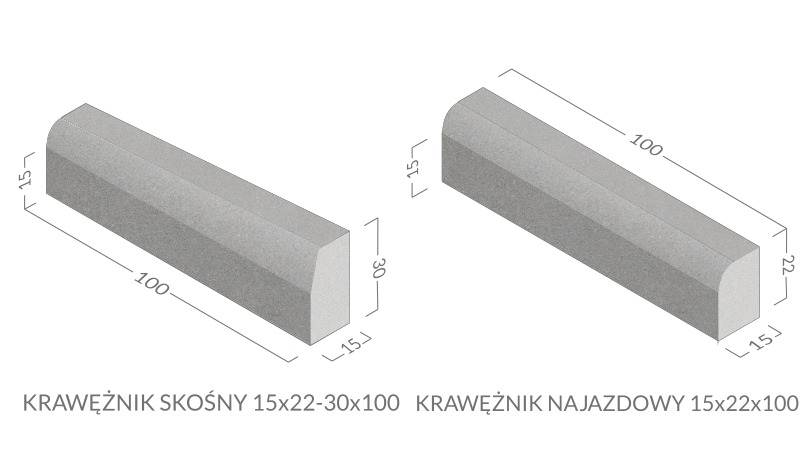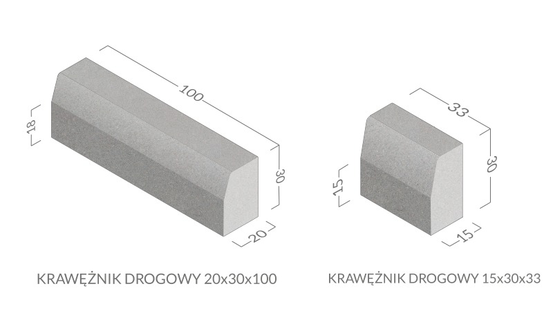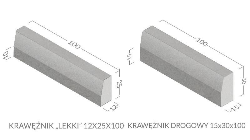 Posiadamy w swojej ofercie ich pełną gamę – od zwykłego krawężnika drogowego (również w wersji 1/3 długości) poprzez krawężnik lekki i ciężki, aż po krawężniki – najazdowy i skośny aż po NOWOŚĆ 2023 – OPORNIK BETONOWY 100x25x12.