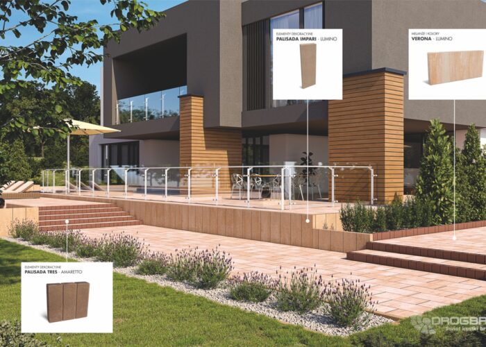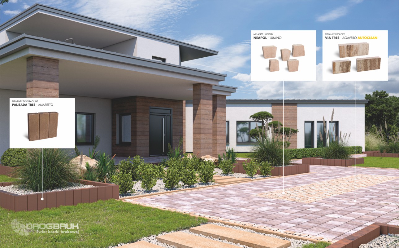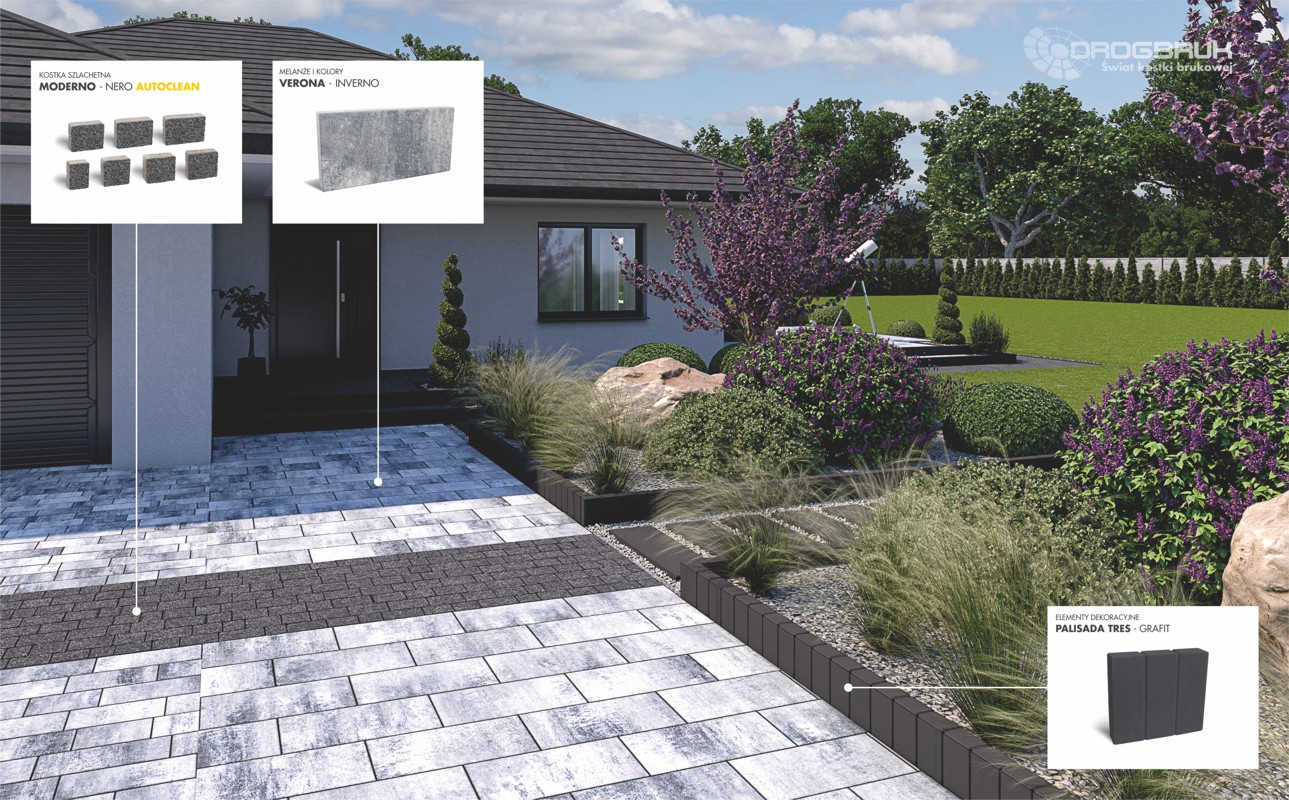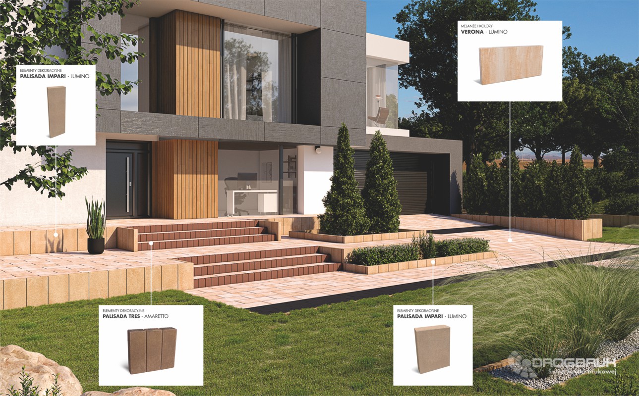Dzięki dobranej kolorystyce, kreuje, wzbogaca i uzupełnia tworzone nawierzchnie.