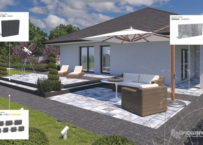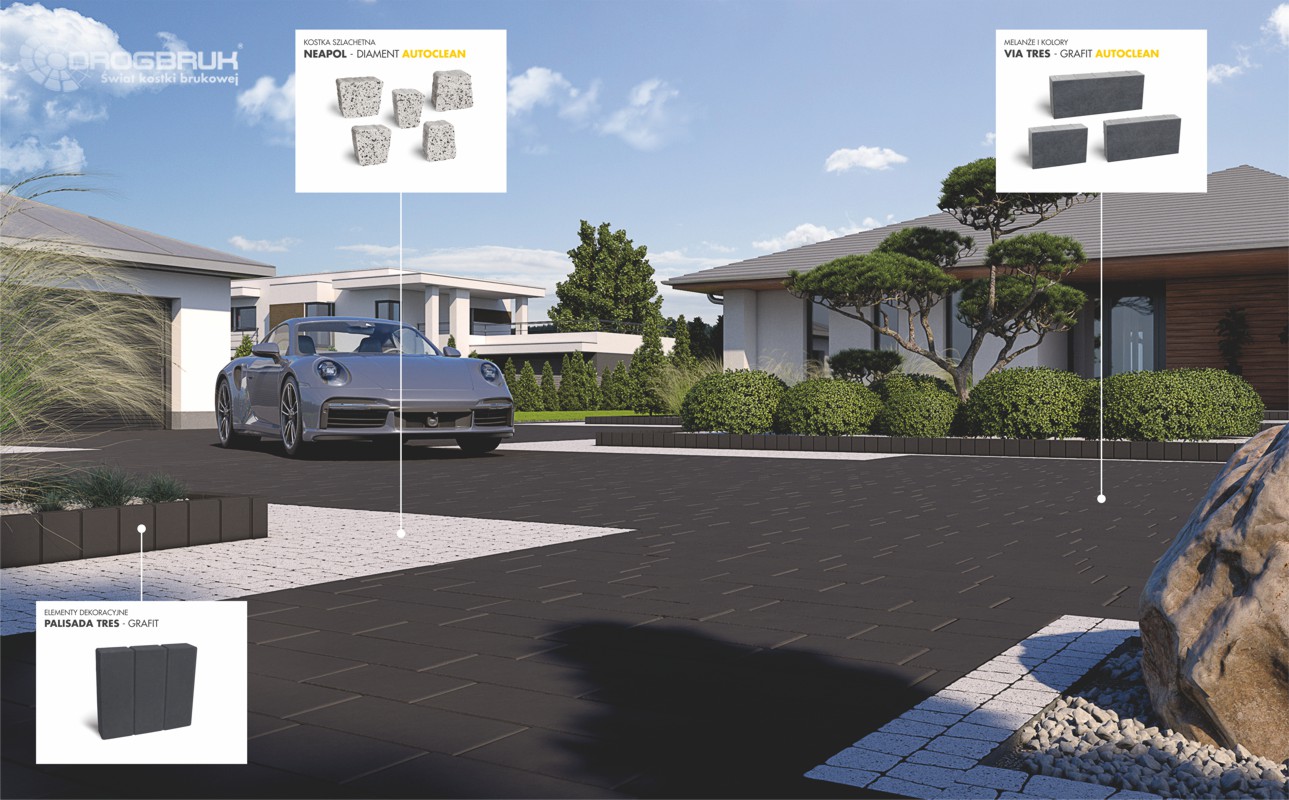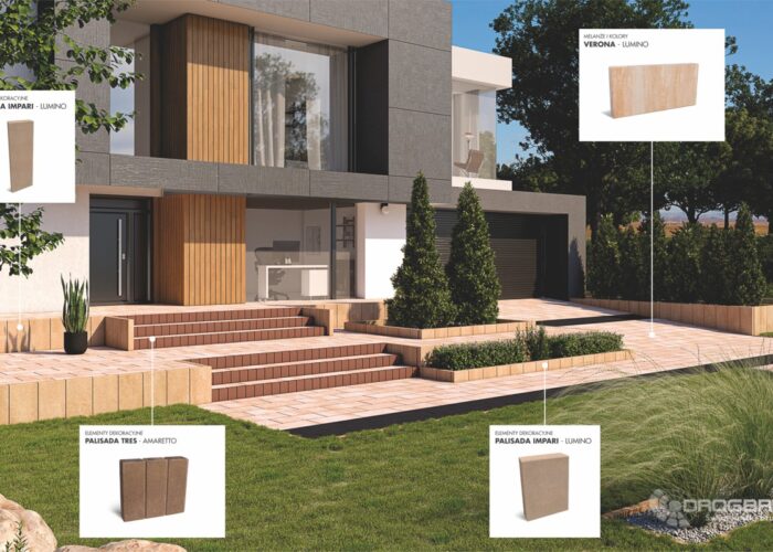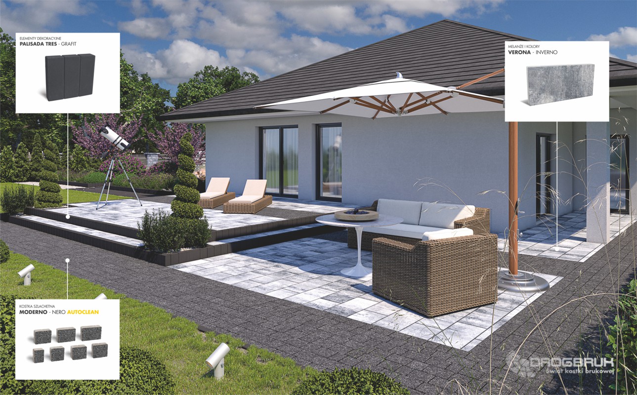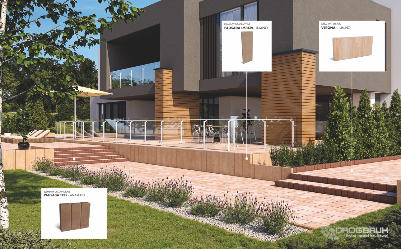 Dzięki dobranej kolorystyce, kreuje, wzbogaca i uzupełnia tworzone nawierzchnie.