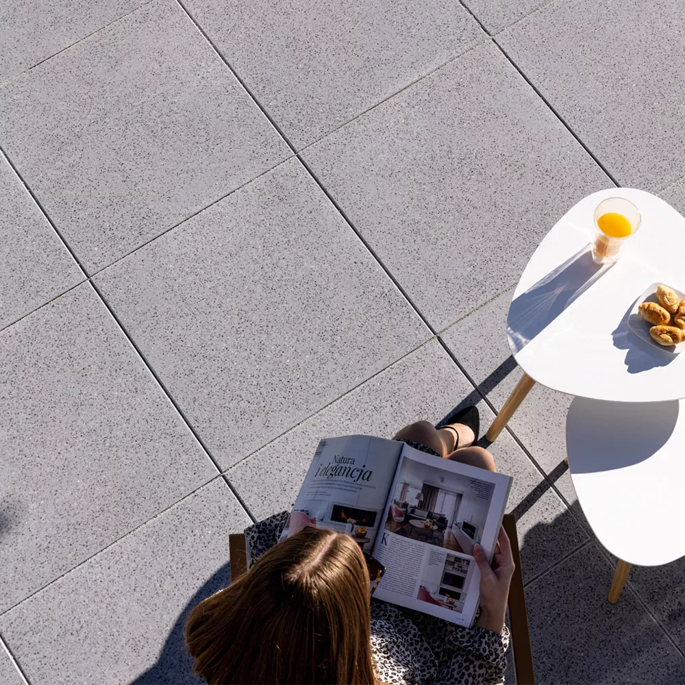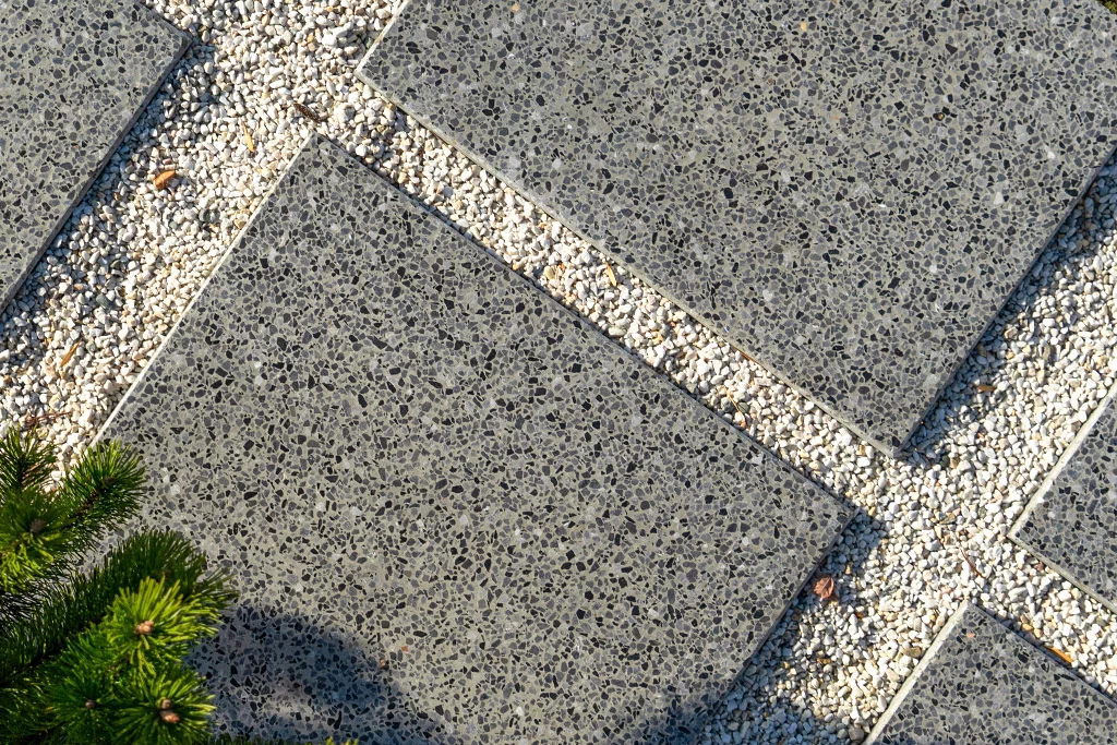 Wzornictwo tych płyt kształtują zagęszczone grube ziarna kruszyw szlachetnych skomponowanych pod kątem kolorystyki bazowej. Blisko sąsiadujące ze sobą duże ziarna zróżnicowanych kolorystycznie kruszyw łamanych lub otoczaków, tworzą bardzo żywe kompozycje.