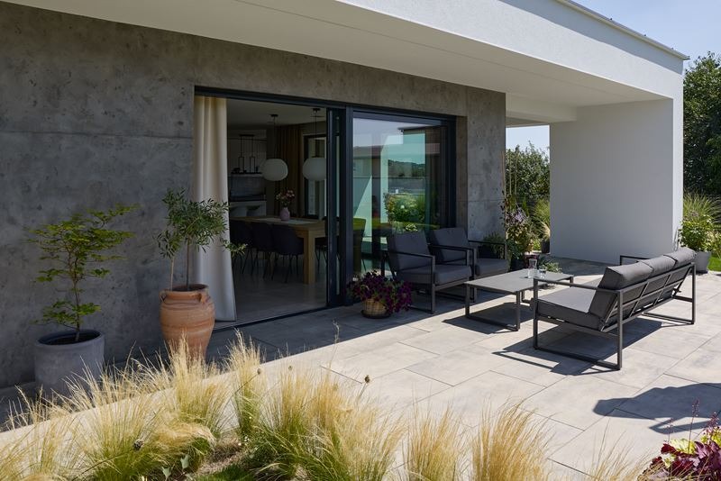 Magnum to nowoczesna płyta tarasowa o powiększonych rozmiarach, która wpisuje się w trend wielkoformatowych produktów nawierzchniowych. Ten powtarzalny i prostokątny element doskonale sprawdzi się do tworzenia nawierzchni tarasowych czy podjazdów* utrzymanych w stylu modern, zarówno minimalistycznych, jak i stawiających na efektowne rozwiązania.