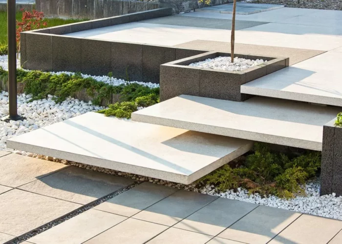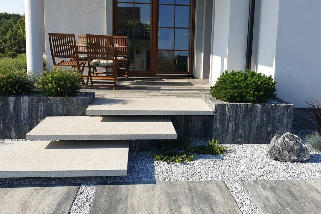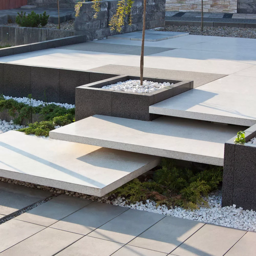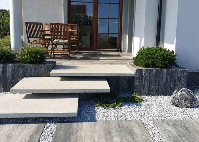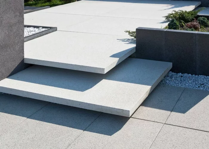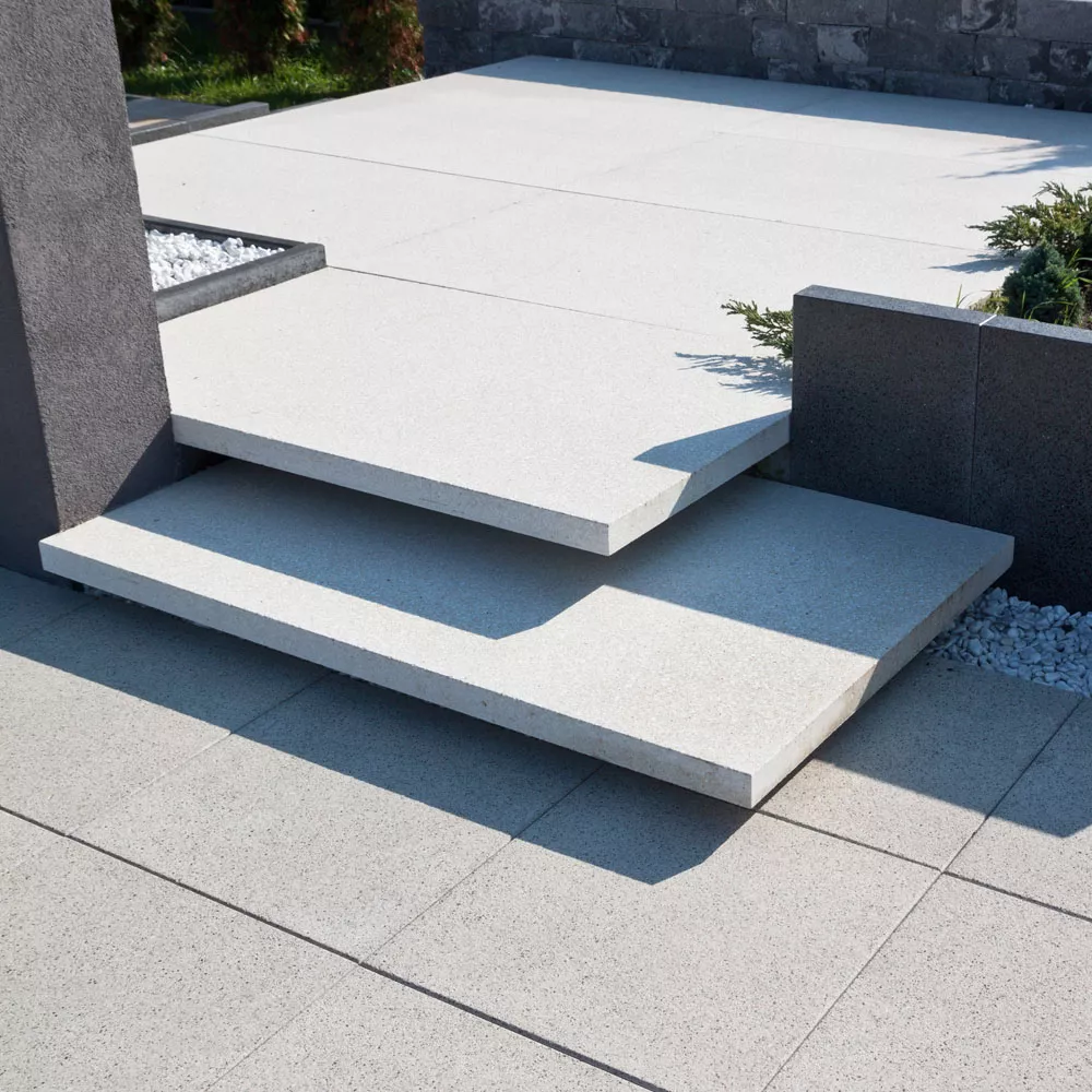 Płyty podestowe to niezwykle atrakcyjnie wyglądająca płyta o szerokim zastosowaniu aranżacyjnym i funkcjonalnym. Nawet najjaśniejsze kolory są doskonale chronione przed zabrudzeniami i w zasadzie nie wymagają konserwacji. Na szlifowanej powierzchni widoczne są ziarna kruszyw szlachetnych przy jednoczesnym zachowaniu delikatnej szorstkości, co daje efektowne odwzorowanie natury. Płyta podestowa znajduje zastosowanie zarówno jako wykończenie stopni blokowych, wielkoformatowe płyty tarasowe, oraz podwieszane stopnie schodowe.