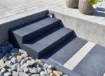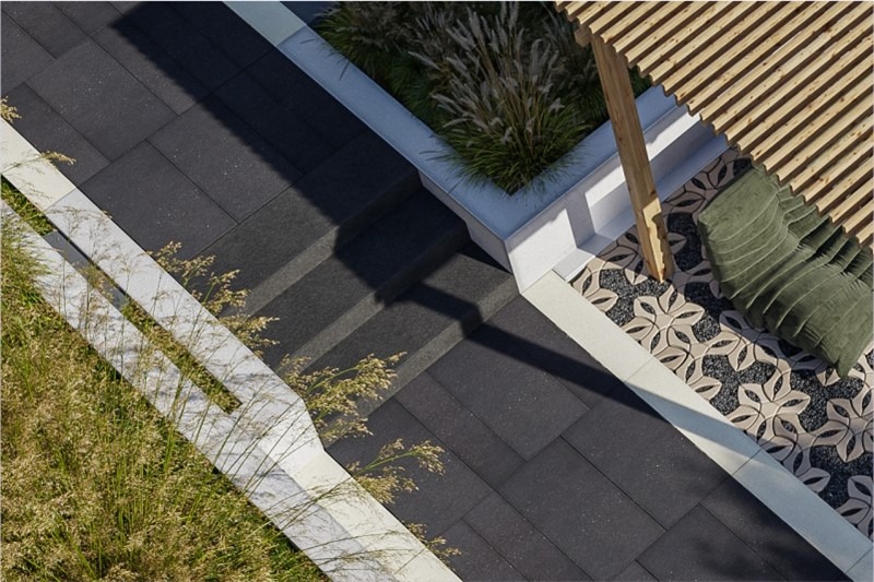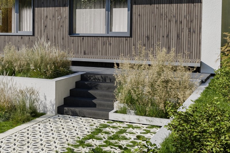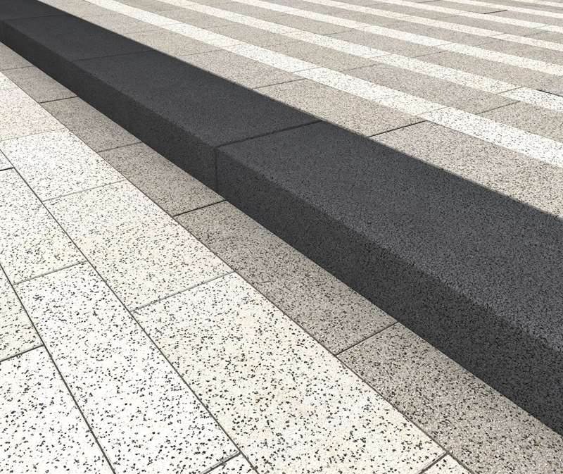 Stopień gładki to element o dużym formacie i kolorystyce utrzymanej w tonacji stonowanych szarości i grafitów. Doskonale komponuje się z pozostałymi produktami Bruk – kostką brukową, płytami, a także resztą wyrobów o powierzchni szlachetnej Royal. Umożliwia tworzenie niepowtarzalnych aranżacji w przestrzeni okołodomowej i nie tylko.
