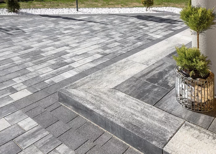 Kostka brukowa Tetra to zestaw niewielkich elementów o grubości 6 cm. Kostki posiadają fazowane krawędzie, które dodatkowo podkreślają rysunek fug. Świetnie posłuży do zagospodarowania przestrzeni bogatych w roślinność, tworząc ścieżki czy schodki. Duża odporność na zabrudzenia oraz łatwość czyszczenia i renowacji zapewnią komfort użytkowania. Dzięki pasmowo przenikającym się kolorom nawierzchnia będzie stanowić wyjątkowo dynamiczną kompozycję.